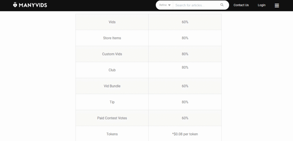 Комиссии ManyVids