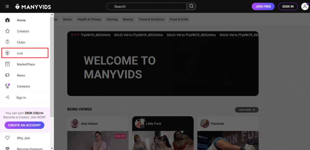 Лайв-стримы и приватные шоу (это аналог вебкам сайтов внутри «МаниВидс»)